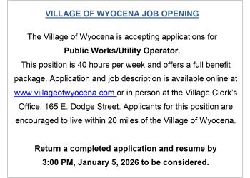 Olieve Huggett Hiller had a vision for a library in the village and through a large donation form her estate that vision was realized. While small in size, the library is part of the South Central Library system which gives residents access to extensive library resources. Please stop in and visit the library which is located in the Wyocena Community Center at 165 East Dodge Street.